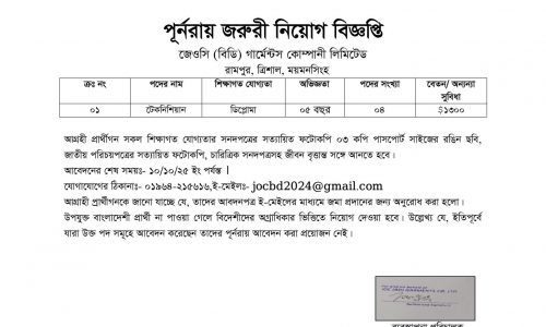 বেতন: ১১,০০০ – ১২,০০০ টাকা (আলোচনাসাপেক্ষ)
