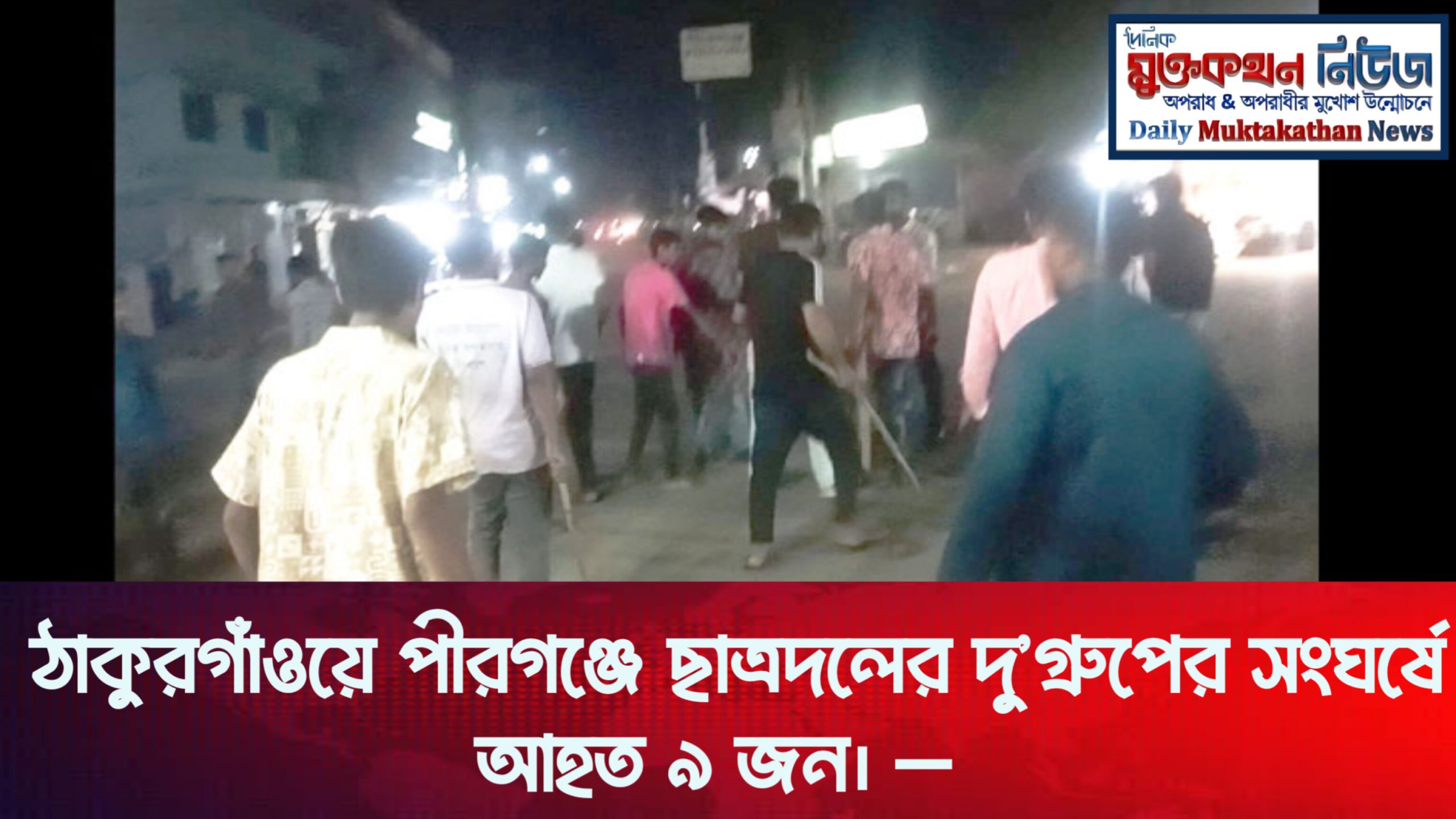 ঠাকুরগাঁও প্রতিনিধি,হাসিনুজ্জামান মিন্টু: ঠাকুরগাঁওয়ের পীরগঞ্জে ছাত্রদলের দু’গ্রুপের মধ্যে দফায় দফায় সংঘর্ষের ঘটনা ঘটেছে। রবিবার (১২ অক্টোবর) সন্ধ্যা থেকে রাত ১১টা পর্যন্ত পৌর শহরের বিভিন্ন স্থানে এই সংঘর্ষ চলে। এতে অন্তত সাতজন আহত হয়েছেন।