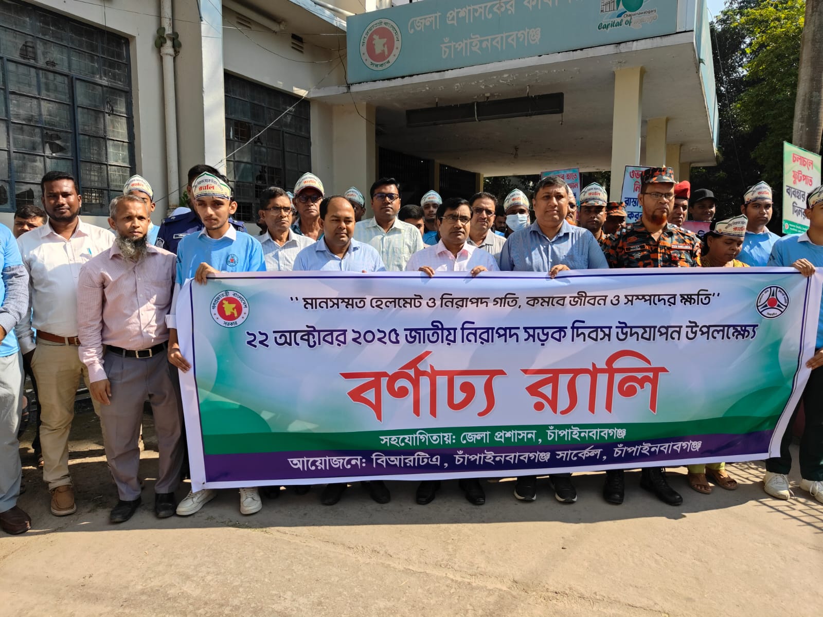 বুধবার (২২ অক্টোবর) সকালে চাঁপাইনবাবগঞ্জ বাংলাদেশ রোড ট্রান্সপোর্ট অর্থরিটি (বিআরটিএ) সার্কেল’র আয়োজনে জেলা প্রশাসকের সার্বিক সহযোগিতায় ডিসি অফিসের কার্যালয় চত্ত্বর থেকে বেলুন উড়িয়ে দিবসের সূচনা করে (বিআরটিএ)। এরপরই একটি বর্ণাঢ্য র্যালি জেলা শহরের গুরুত্বপূর্ণ সড়ক প্রদক্ষিণ শেষে একই স্থানে শেষ হয়। পরে জেলা প্রশাসকের সম্মেলন কক্ষে আলোচনা সভা অনুষ্ঠিত হয়।