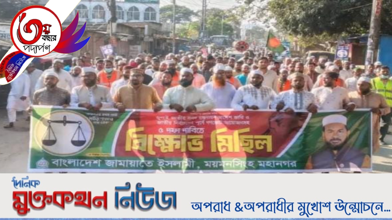 ৫ দফা দাবিতে ময়মনসিংহে জামায়াতের বিক্ষোভ ও মিছিল