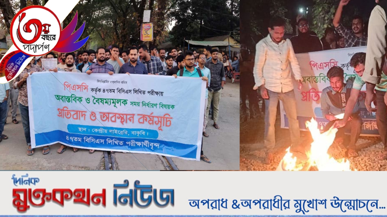 আরাফাত হোসাইন,বাকৃবি প্রতিনিধি:  বাংলাদেশ সরকারি কর্ম কমিশন (পিএসসি) ঘোষিত ৪৭তম বিসিএস লিখিত পরীক্ষার সময়সূচিকে অযৌক্তিক ও বৈষম্যমূলক দাবি করে বাংলাদেশ কৃষি বিশ্ববিদ্যালয় (বাকৃবি)–এর পরীক্ষার্থীরা অবস্থান ধর্মঘট পালন করেছেন।