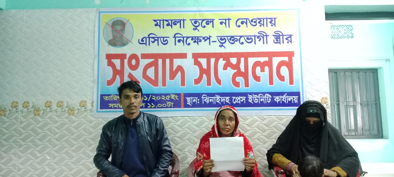 আমি দ্রুত হাসপাতালে যেয়ে চিকিৎসা নিয়ে কিছুটা সুস্থ হলে জীবননগর থানাতে গেলে থানা আবারো আসামীর প্রভাবে আমার মামলা গ্রহন করেনা। পরবর্তীতে আমি বিজ্ঞ এসিড অপরাধ দমন ট্রাইব্যুনালে এসিড নিক্ষেপের মামলা দায়ের করি যার মামলা নম্বর পিটিশন -০১/২০২৫,। মামলার পর থেকে আসামী নিজেকে বাঁচাতে। বিভিন্ন মাধ্যমে আমার বিরুদ্ধে অপপ্রচার চালাচ্ছে ও আমাকে খুন জখম ও নানাবিধ ভয় ভীতি দেখাচ্ছে। আমাকে আমার বাসাতেও যেতে দিচ্ছেনা। আমি আমার যৌতুক লোভী স্বামীকে এমন নির্যাতনের কারণে তালাক দিয়ে ছিলাম। সে প্রতিশ্রুতি দিয়েছিল পুনরায় আমাকে আর কোনদিন এভাবে নির্যাতন করবে না। সে কারনে সন্তানের কথা ভেবে পূনরায় তার সংসার করছিলাম। সে আমাকে হত্যার পরিকল্পনা করতেই এই এসিড নিক্ষেপ করে। আমি তার দৃষ্টান্ত মূলক শাস্তি চাই। সংবাদ সম্মেলনে উপস্থিত ছিলেন তার আগের সংসারের ছেলে মোঃ বাপ্পারাজ মন্ডল বউমা মোছাঃ গোলাপী খাতুন।