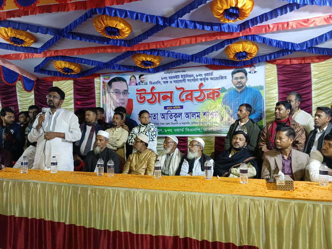 ৮নং ওয়ার্ড বিএনপির সভাপতি রুহুল আমিন মেম্বারের সভাপতিত্বে প্রধান অতিথি হিসেবে বক্তব্য রাখেন কুমিল্লা উত্তর জেলা বিএনপির যুগ্ম আহ্বায়ক ও চান্দিনা উপজেলা বিএনপির সভাপতি আতিকুল আলম শাওন।