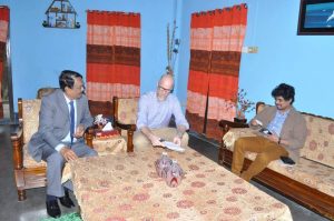স্টাফ রিপোর্টার, সাজ্জাদ মাহমুদ মনিরঃ সুনামগঞ্জ-৫ ছাতক দোয়ারাবাজার আসনে ত্রয়োদশ জাতীয় সংসদ নির্বাচনে বিএনপি মনোনীত প্রার্থী, কেন্দ্রীয় বিএনপির সহ-সাংগঠনিক সম্পাদক, সুনামগঞ্জ জেলা বিএনপির আহবায়ক ও সাবেক সংসদ সদস্য কলিম উদ্দিন আহমেদ মিলন’র সঙ্গে সৌজন্য সাক্ষাৎ করেছেন ঢাকাস্থ মার্কিন দূতাবাসের পলিটিক্যাল অফিসার ও ফার্স্ট সেক্রেটারি জেমস এ. স্টুয়ার্ট।