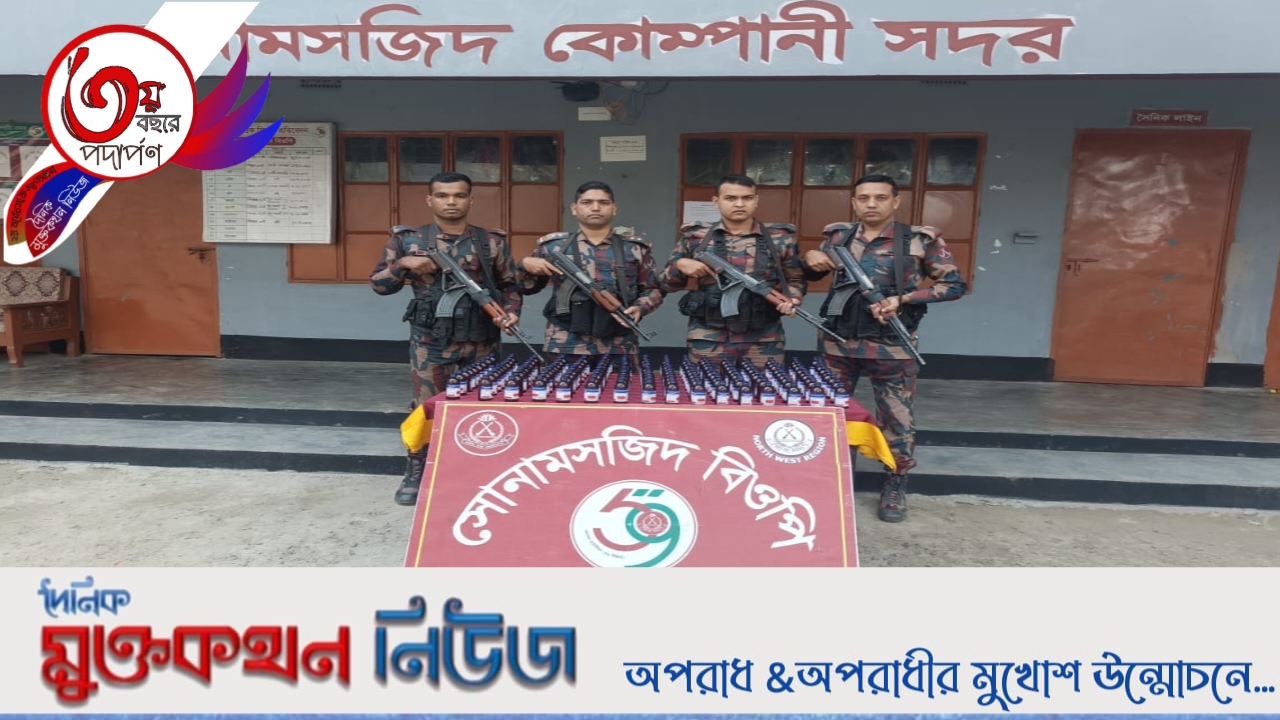 চাঁপাইনবাবগঞ্জ মহানন্দা ব্যাটালিয়ন ৫৯ বিজিবির বিভিন্ন সূত্র তথ্যের মাধ্যমে জানতে পারে, চলমান শীত মৌসুমে প্রতিবেশী দেশ ভারত হতে ফেন্সিডিল এর বিকল্প হিসেবে ব্যবহৃত নেশাজাতীয় চকো প্লাস সিরাপ চোরাচালানে নতুন মাত্রা যোগ করতে পারে। সেই তথ্যের ভিত্তিতে মহানন্দা ব্যাটালিয়ন (৫৯ বিজিবি) কর্তৃক দায়িত্বপূর্ণ সীমান্তে গোয়েন্দা তৎপরতা এবং টহল জোরদার করা হয়েছিল। এরই ধারাবাহিক সফলতা হিসেবে গোপন সংবাদের ভিত্তিতে গত (০৩ ডিসেম্বর) সন্ধ্যা ৭ ঘটিকায় সোনামসজিদ বিওপি’র একটি বিশেষ টহল দল অভিযান পরিচালনা করে সীমান্ত পিলার ১৮৫/১৭-এস হতে আনুমানিক ৪০ গজ বাংলাদেশের অভ্যন্তরে মালিকবিহীন ১৫০ বোতল ভারতীয় চকো প্লাস সিরাপ আটক করতে সক্ষম হয়েছে। বর্তমানে প্রচলিত আইনী প্রক্রিয়ার অংশ হিসেবে আটককৃত চকো প্লাস সিরাপগুলো শিবগঞ্জ থানায় হস্তান্তরের কার্যক্রম চলমান রয়েছে। উল্লেখ্য, বিগত ০১ মাসে এই ব্যাটালিয়ন প্রায় ২০০ বোতল চকো প্লাস সিরাপ আটক করতে সক্ষম হয়েছে। এ ব্যাপারে মহানন্দা ব্যাটালিয়ন (৫৯ বিজিবি) এর অধিনায়ক লেঃ কর্নেল গোলাম কিবরিয়া, বিজিবিএম, বিজিওএম বিষয়টির সত্যতা নিশ্চিত করেছেন। তিনি বলেন, মাদক চোরাচালানের বিরুদ্ধে বিজিবি’র জিরো টলারেন্স নীতি অব্যাহত রয়েছে।