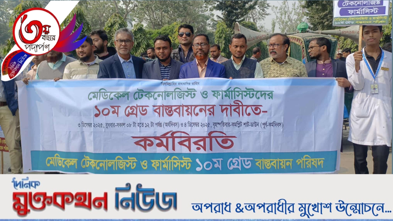 হুঁশিয়ারি দিয়ে তারা আরও বলেন, “অবিলম্বে আমাদের ন্যায্য দাবি বাস্তবায়ন করতে হবে। অন্যথায় আমরা পূর্ণাঙ্গ শাটডাউনে পড়ে কঠর আনন্দলনে যেতে বাধ্য হবো এবং তখন দেশের চিকিৎসা সেবা থমকে যাবে। দ্রুততম সময়ে সরকারের কাছে আমাদের দাবি—১০ম গ্রেড বাস্তবায়নে কার্যকর পদক্ষেপ নেওয়া হোক।”