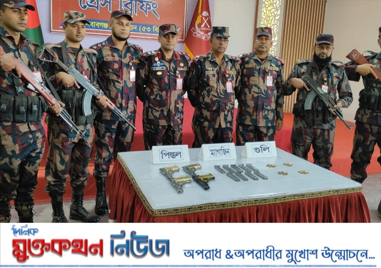 চাঁপাইনবাবগঞ্জ ব্যাটালিয়ন (৫৩ বিজিবি) এর অভিযানে ৪টি ইউএসএ প্রস্তুতকৃত বিদেশি অস্ত্র ও ২৪ রাউন্ড গুলি এবং ৯ টি ম্যাগাজিন জব্দ করেছে। ইনকিলাব মঞ্চের মুখপাত্র শরীফ ওসমান হাদীকে গত ১২ ডিসেম্বর গুলি করাকে কেন্দ্র করে ৫৩ বিজিবি কর্তৃক সীমান্ত এবং দায়িত্বপূর্ণ এলাকা বিশেষ টহল,চেকপোস্ট স্থাপন এবং গোয়েন্দা নজরদারি বৃদ্ধি করা হয়েছে। সম্প্রতি চাঁপাইনবাবগঞ্জ সীমান্ত এলাকা দিয়ে দুষ্কৃতিকারীরা বাংলাদেশ অভ্যন্তরে বিশৃংখলা পরিবেশ সৃষ্টির লক্ষ্যে বেশ কিছু পরিমাণ অস্ত্র প্রবেশে পরিকল্পনা করবে বলে গোয়েন্দা তথ্যের মাধ্যমে জানতে পারে ৫৩ বিজিবি। এরই ধারাবাহিকতায় উর্দ্ধতন কর্তৃপক্ষের নির্দেশনায় চাঁপাইনবাবগঞ্জ ব্যাটালিয়ান ৫৩ বিজিবির অধীনে মনোহরপুর বিওপি’র দায়িত্বপূর্ণ এলাকায় সীমান্ত হতে আনুমানিক ১ কিলোমিটার বাংলাদেশের অভ্যন্তরে গোপালপুর নামক স্থানে একটি বিশেষ অভিযান পরিচালনা করে। অভিযান পরিচালনাকালে দুজন মোটরসাইকেল আরোহীকে দূর থেকে থামতে বললে মোটরসাইকেল আরোহীরা দ্রুততম পালিয়ে যাওয়ার সময় একটি ব্যাগ পড়ে যায়। বিজিবি টহলকারীরা মোটরসাইকেল থেকে পড়ে যাওয়া ব্যাগটি উদ্ধার করতঃ কালো পলিথিনে মোড়ানো ৪ টি অস্ত্রসহ বিপুল গোলাবারুদ জব্দ করে। দুষ্কৃতিকারীরা বাংলাদেশের অভ্যন্তরে বড় ধরনের নাশকতা পরিস্থিতির সৃষ্টি লক্ষ্যে অবৈধ পথে অস্ত্র ও গোলাবারুদ আনার জন্য সর্বোচ্চ প্রচেষ্টা চালিয়ে যাচ্ছে। চাঁপাইনবাবগঞ্জ সীমান্ত এলাকায় চোরাচালান ও অপরাধ দমনে নিয়মিত অভিযানের অংশ হিসেবে এ অভিযান পরিচালনা করে আসছে। ৫৩ বিজিবি এই অভিযানের সময় কাউকে আটক করা সম্ভব হয়নি। বিজিবি সব সময় তৎপর রয়েছে এবং আমাদের সকল সদস্য পেশা দায়িত্বের সাথে সংকল্পবদ্ধ। অস্ত্র গোলাবারুদ চোরাচালান প্রতিরোধ ও দুষ্কৃতিকারীদের অনুপ্রবেশ ঠেকাতে বিজিবি কর্তৃক সার্বক্ষণিক সীমান্ত এলাকায় কঠোর গোয়েন্দা নজরদারী ও টহল জোরদার করা হয়েছে।