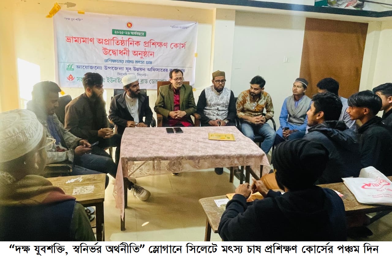 “দক্ষ যুবশক্তি, স্বনির্ভর অর্থনীতি” স্লোগানে সিলেটে মৎস্য চাষ প্রশিক্ষণ কোর্সের পঞ্চম দিন