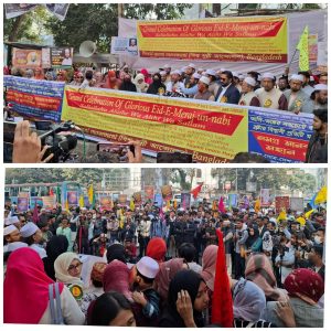 সত্য ও জীবনের উপলব্ধির জন্য অতি অপরিহার্য মৌলিক ঈমানী বিষয় ঈদে মেরাজ শরীফের মহান তাৎপর্য্য তুলে ধরার লক্ষ্যে বিশ্ব সুন্নী আন্দোলনের উদ্যোগে আজ ঢাকা প্রেসক্লাব সম্মুখে সমাবেশ ও সমাবেশ শেষে বর্ণাঢ্য শোভাযাত্রা অনুষ্ঠিত হয়।