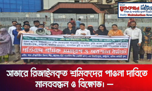 সাভারে রিজাইনকৃত শ্রমিকদের পাওনা দাবিতে মানববন্ধন ও বিক্ষোভ