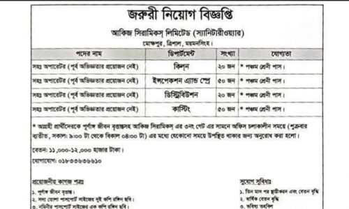 আকিজ সিরামিকস লিমিটেডে জরুরি নিয়োগ