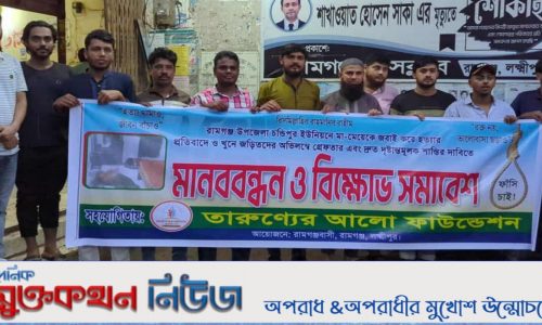 রামগঞ্জে মা-মেয়ে হত্যার প্রতিবাদে মানববন্ধন ও বিক্ষোভ সমাবেশ
